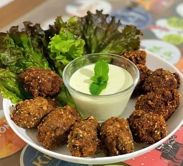 Modele os kibes e empane na mistura de farinha de linhaça com queijo parmesão.